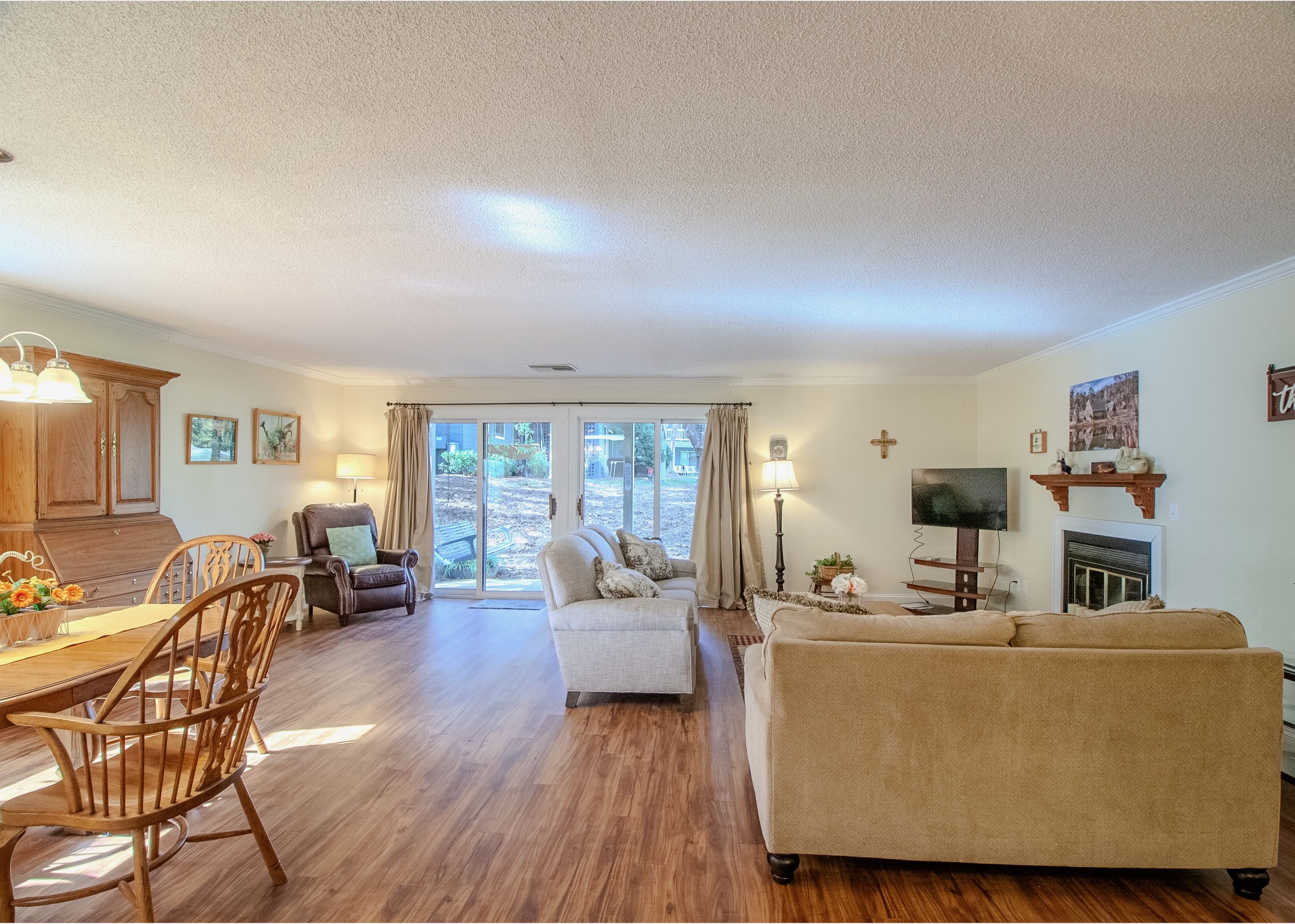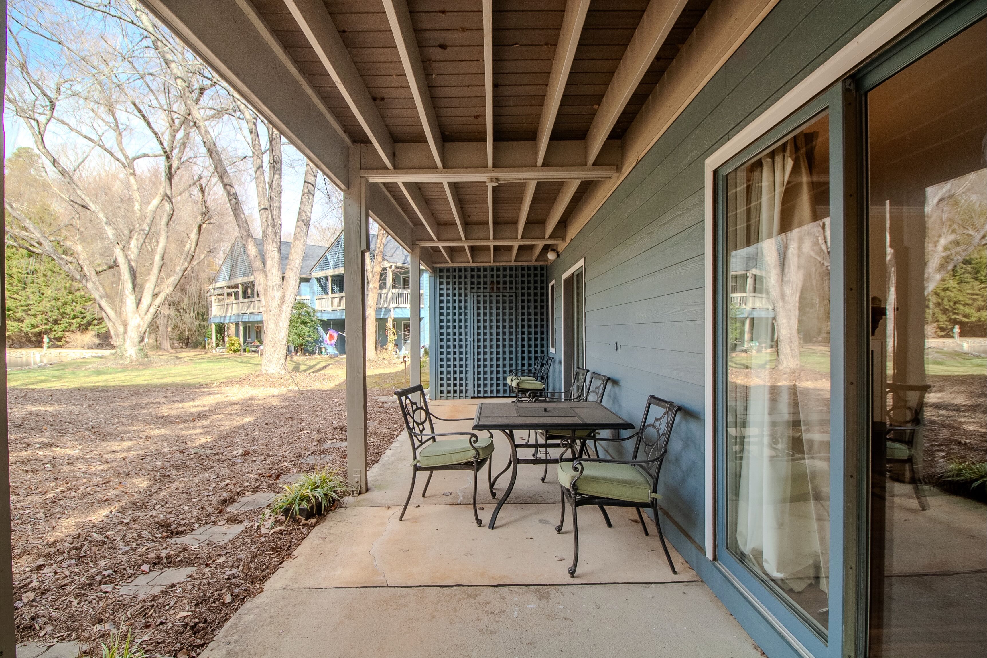 Welcome to your haven at Tri Vista in the Lake Junaluska community! This condominium invites you into spacious open-concept living with 3 bedrooms and 2 baths, featuring granite countertops in the kitchen, and wood-burning fireplace. Create lasting memories in your comfortable living space. Enjoy your morning coffee on the back porch overlooking the pond. Immerse yourself in the serene beauty of Lake Junaluska on your walk around the lake. Convenient to Waynesville, local shopping, grocery stores and outdoor activities. Proximity to the Great Smoky Mountain National Park and Asheville adds adventure to your doorstep. This home is not just a property; it's a lifestyle. Most furniture conveys, ensuring a seamless transition to your new retreat. Seize the opportunity to make this Tri Vista condo your home sweet home! Two parking spaces included and short term rentals permitted.